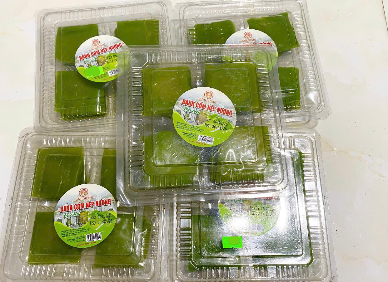 Bánh cốm đóng gói 8 cái mỗi hộp, khối lượng tịnh 350g