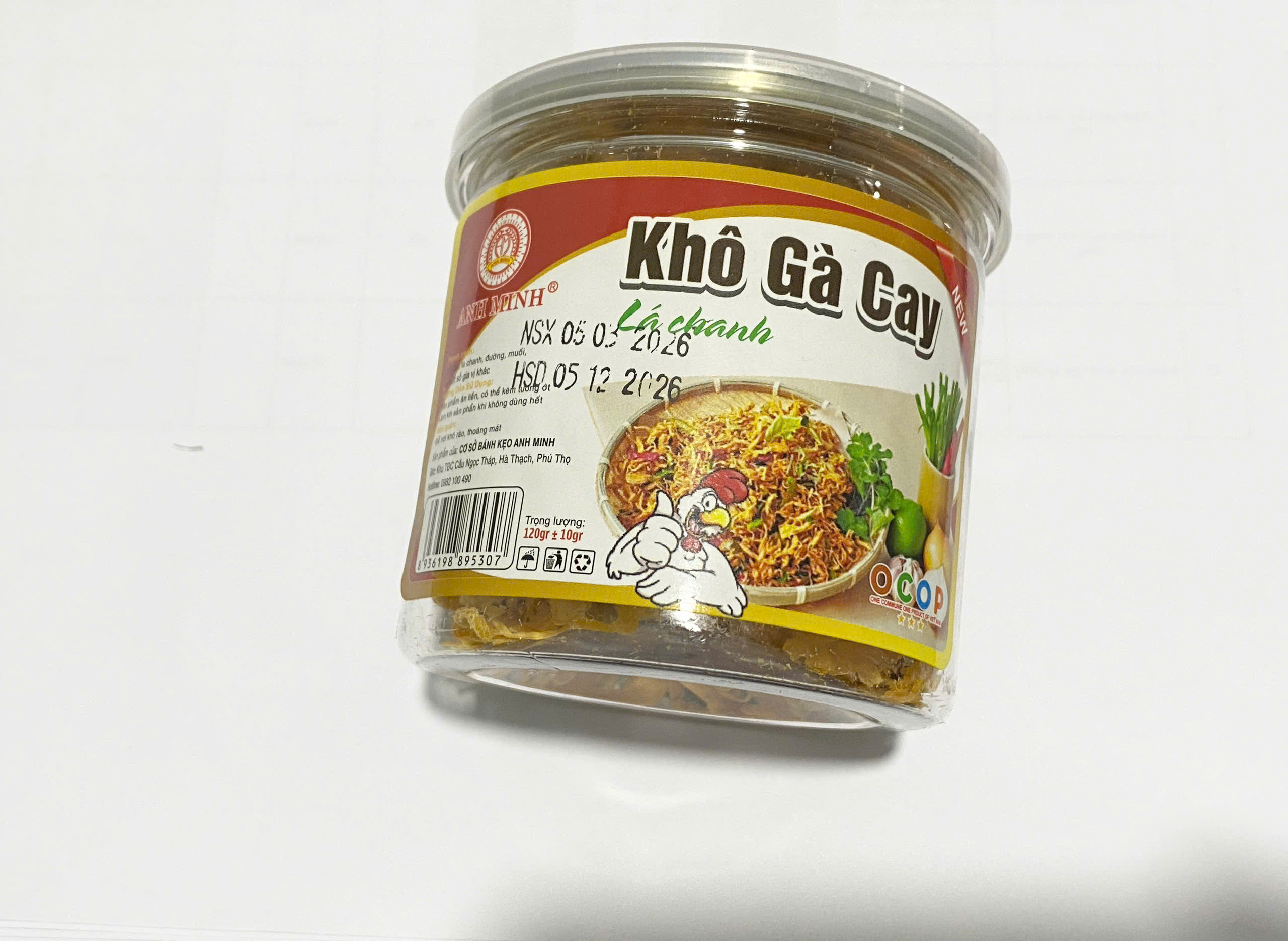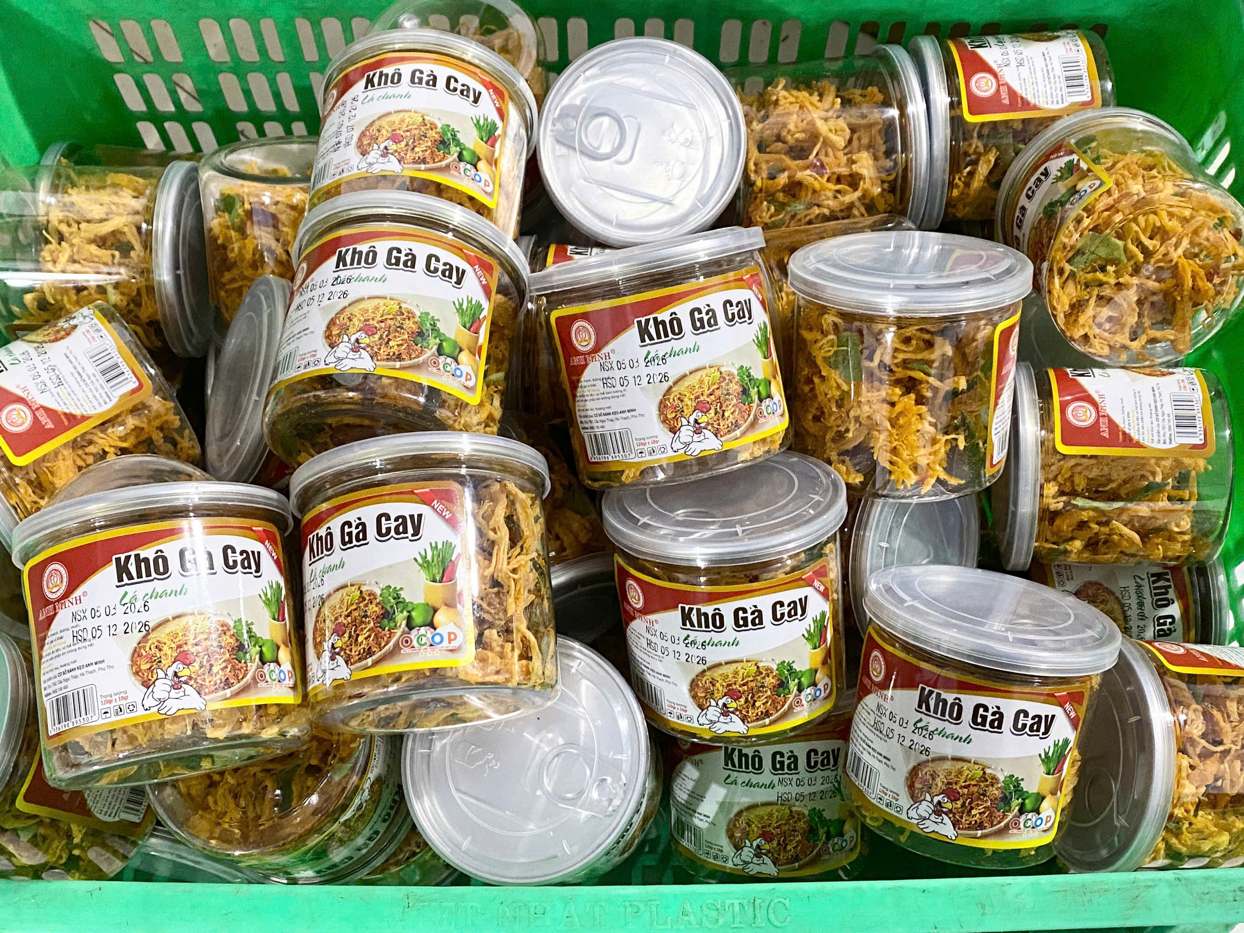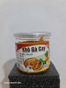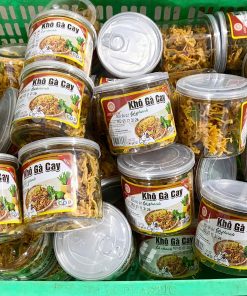 Khô gà cay lá chanh đóng gói hộp khối lượng tịnh 100g